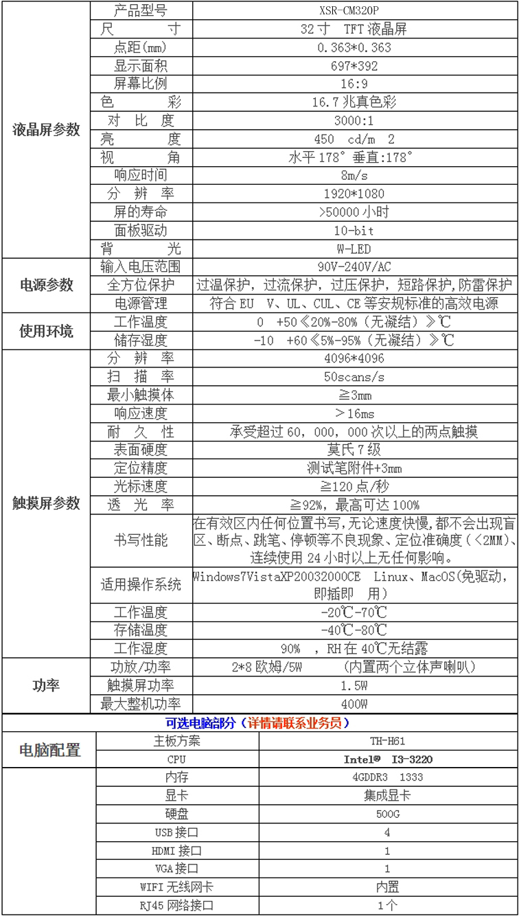 新視銳32寸觸摸一體機——立式紅外觸摸產品參數: