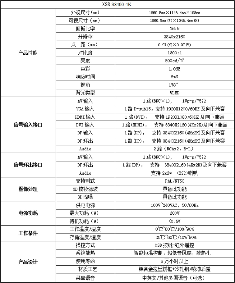 新視銳84寸4倍高清液晶顯示器性能參數: