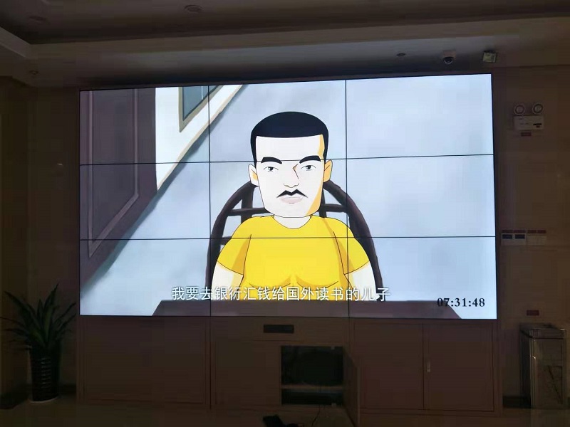 此次項目采用3.5mm拼縫設計完成3×3拼接顯示設備,在合肥農商銀行大廳完成安裝搭建。